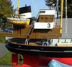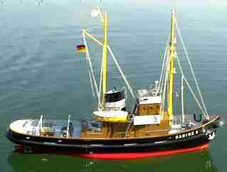 Der Hafenschlepper Sabine 3 basiert auf dem Bausatz Bugsier 3 von Graupner. Da ich den Namen des Bausatzes nicht übernehmen wollte wurde er nach meiner Frau benannt.